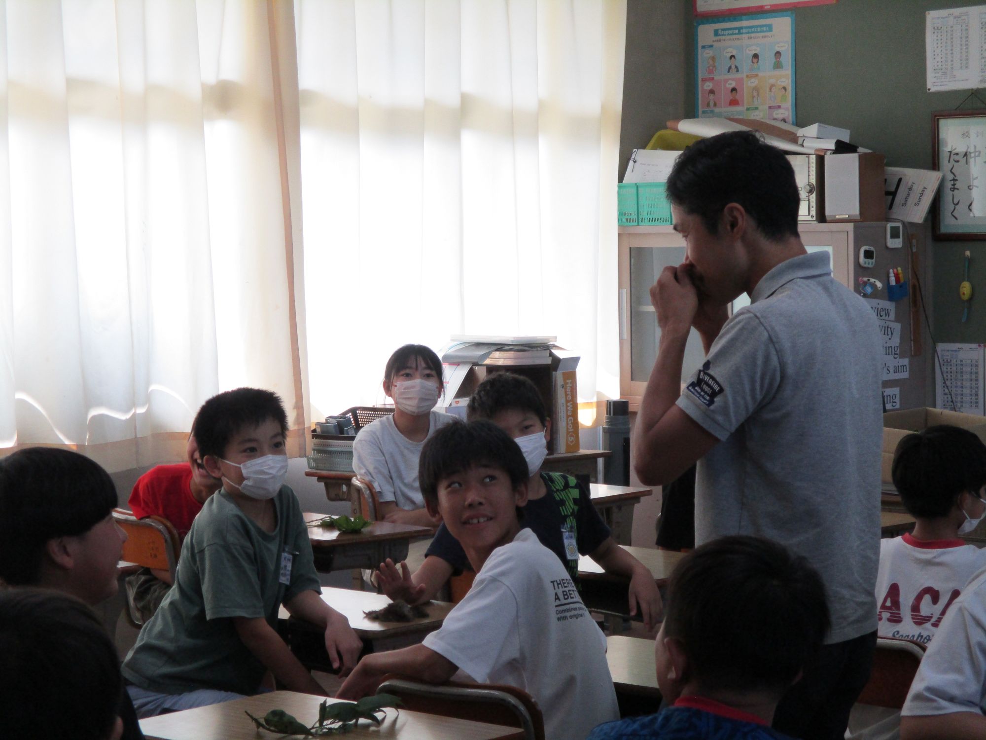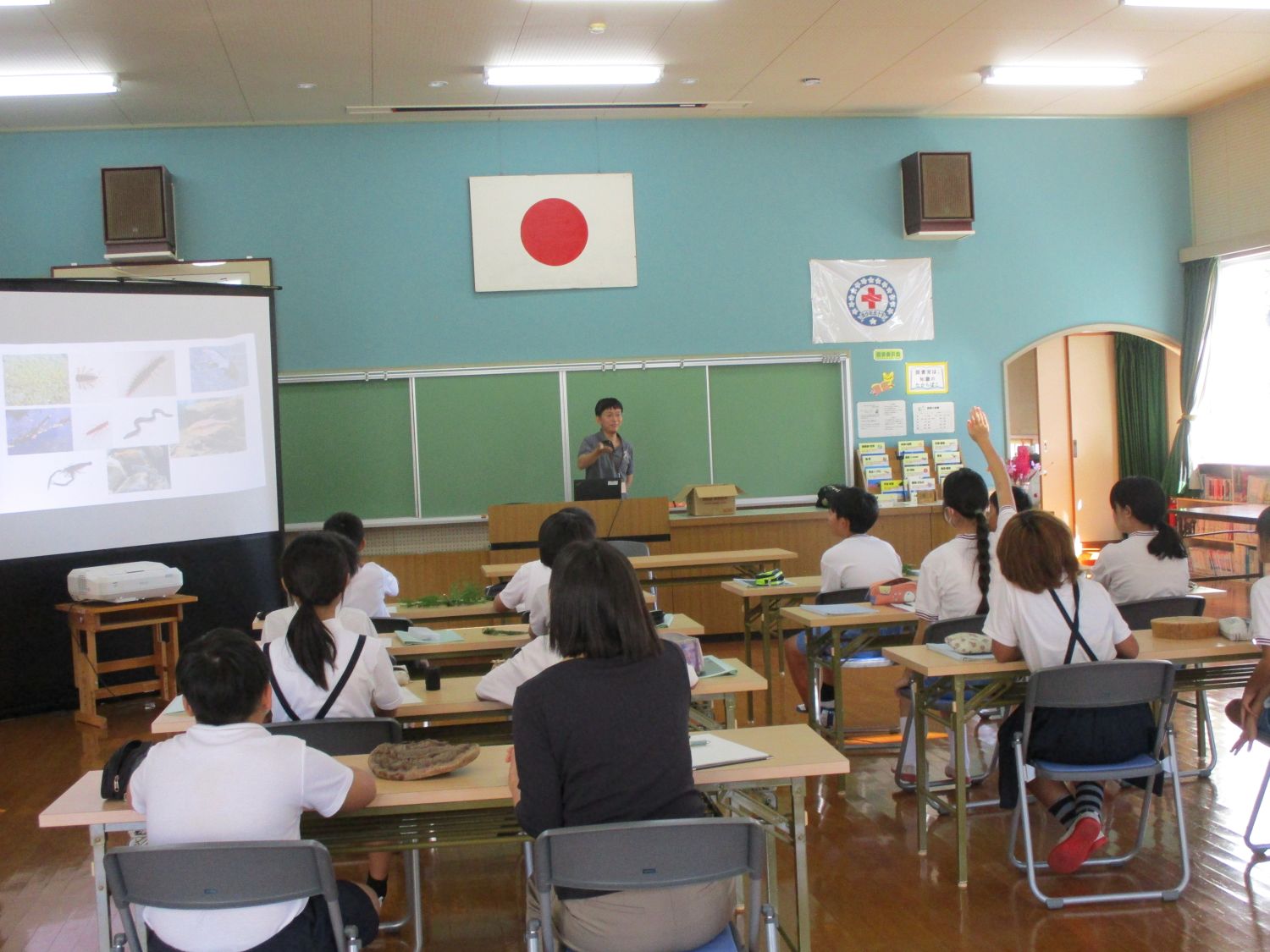 対象児童は、3年生6名、4年生4名の計10名と少人数でしたが、講師の船越さんの山や川の話に目を輝かせながら聞き入っていました。