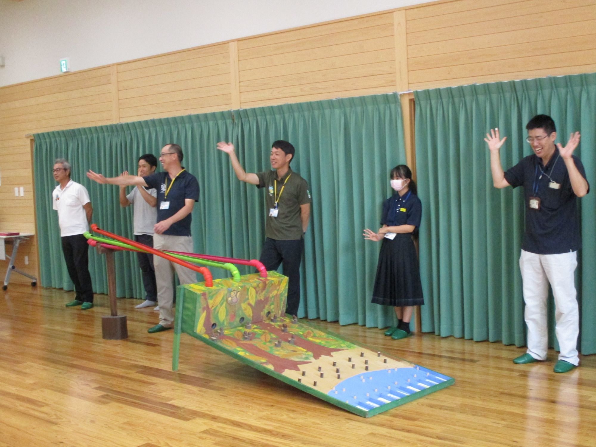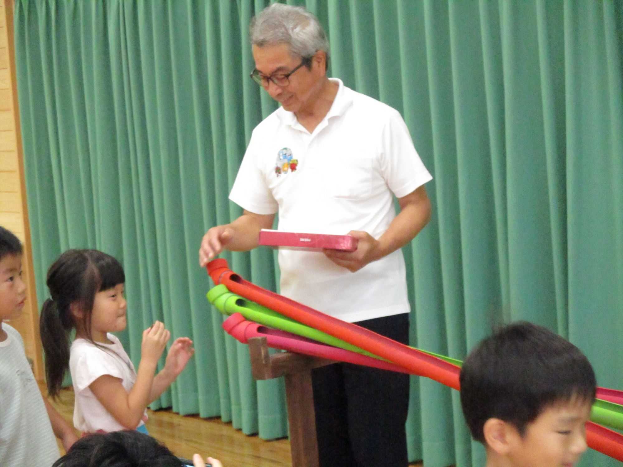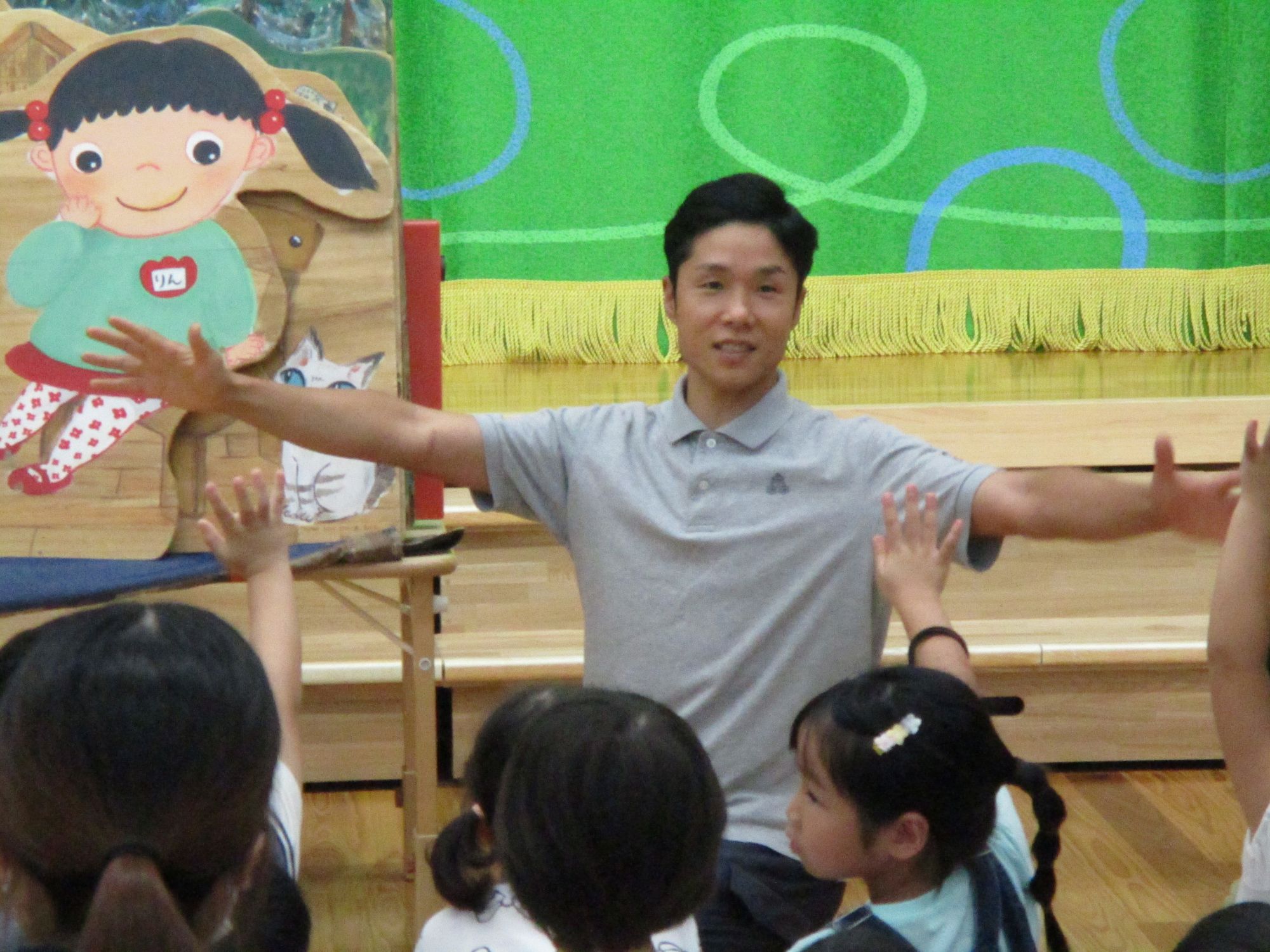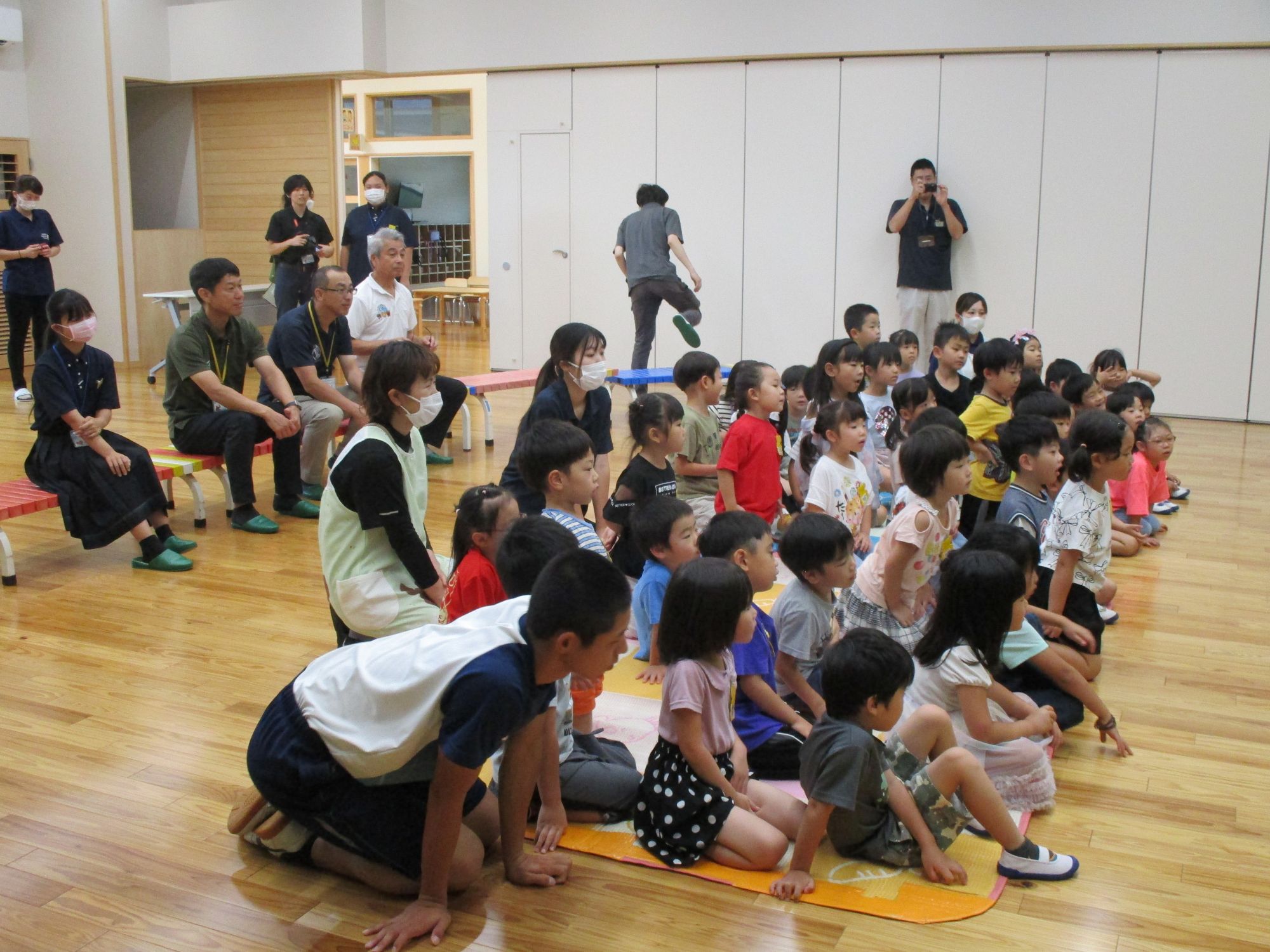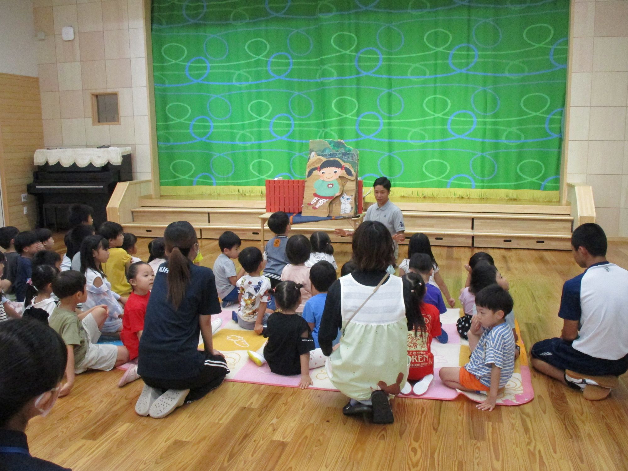9月24日、鬼北町きほくの里保育園を訪れ、森の教室を開催しました。子供たちは、木の紙芝居を見たり、実際に葉っぱを触ったりしながら森について勉強しました。突然教室に現れたみきゃん!もちろん大歓声!最後にドングリを転がして遊ぶゲームも楽しみました。