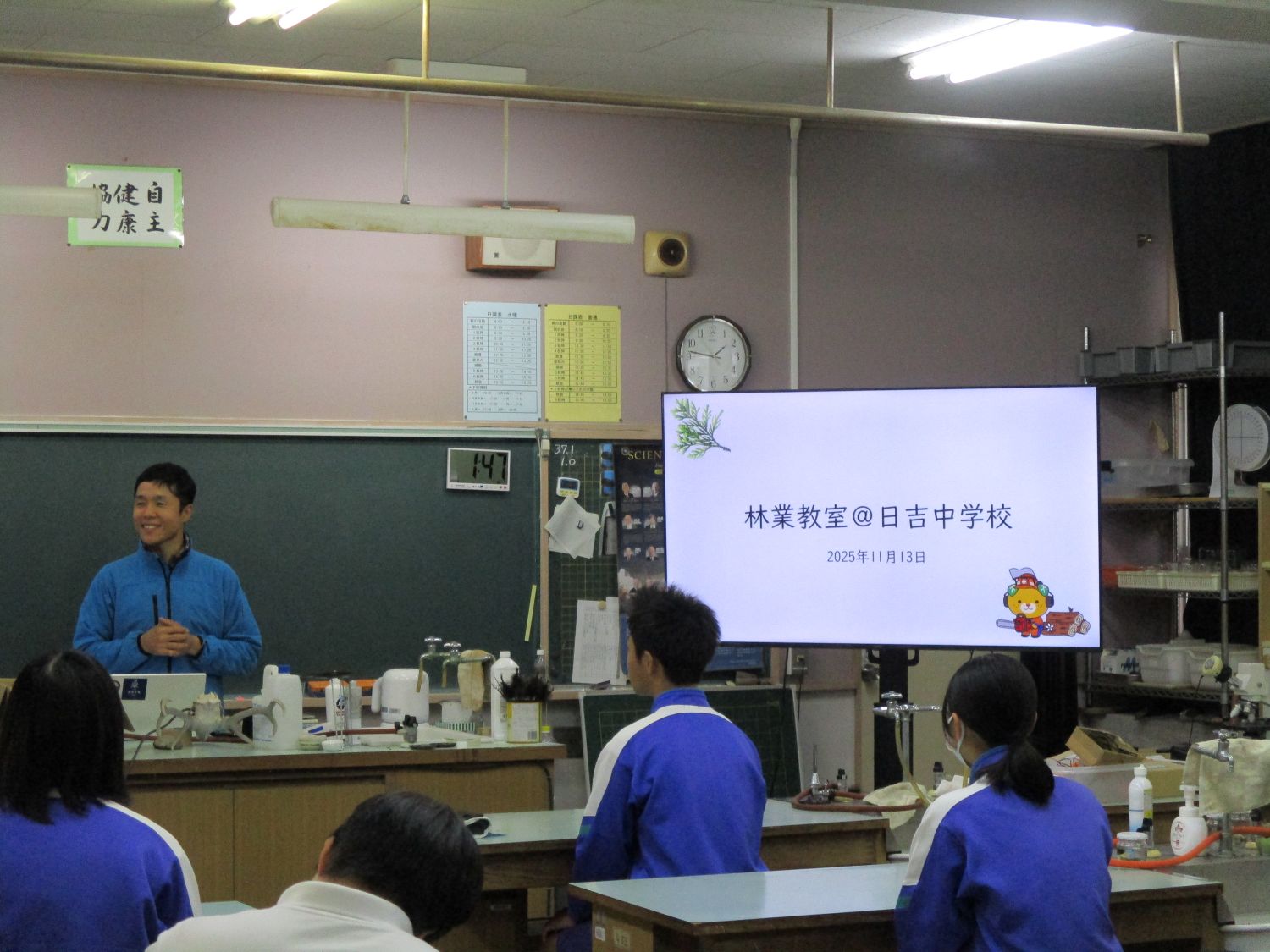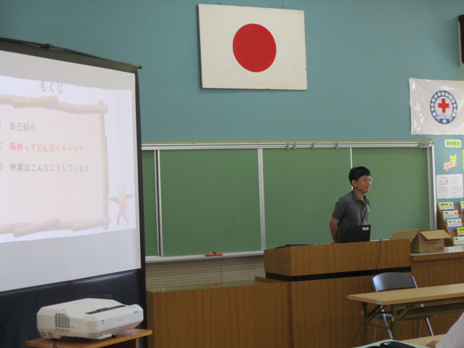 愛媛県南予地方局森林林業課から中山累さんを講師にお招きし、森や自然の話、林業の大切さについて講義をしていただきました。