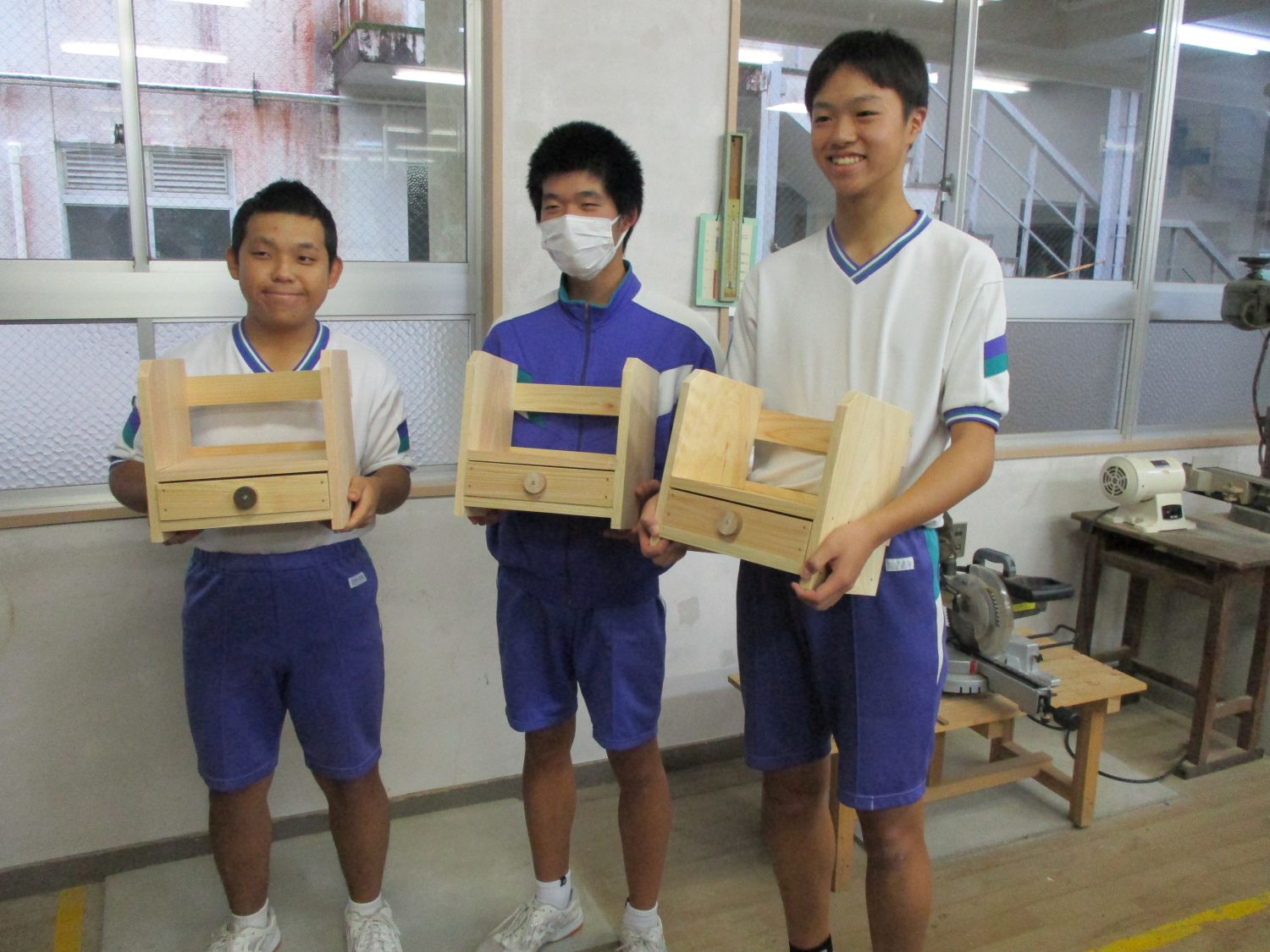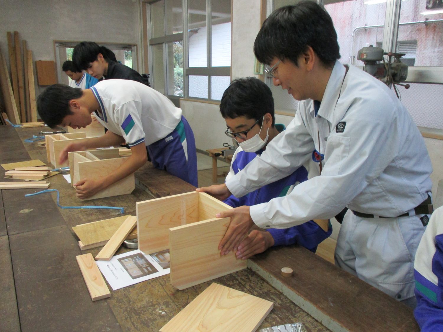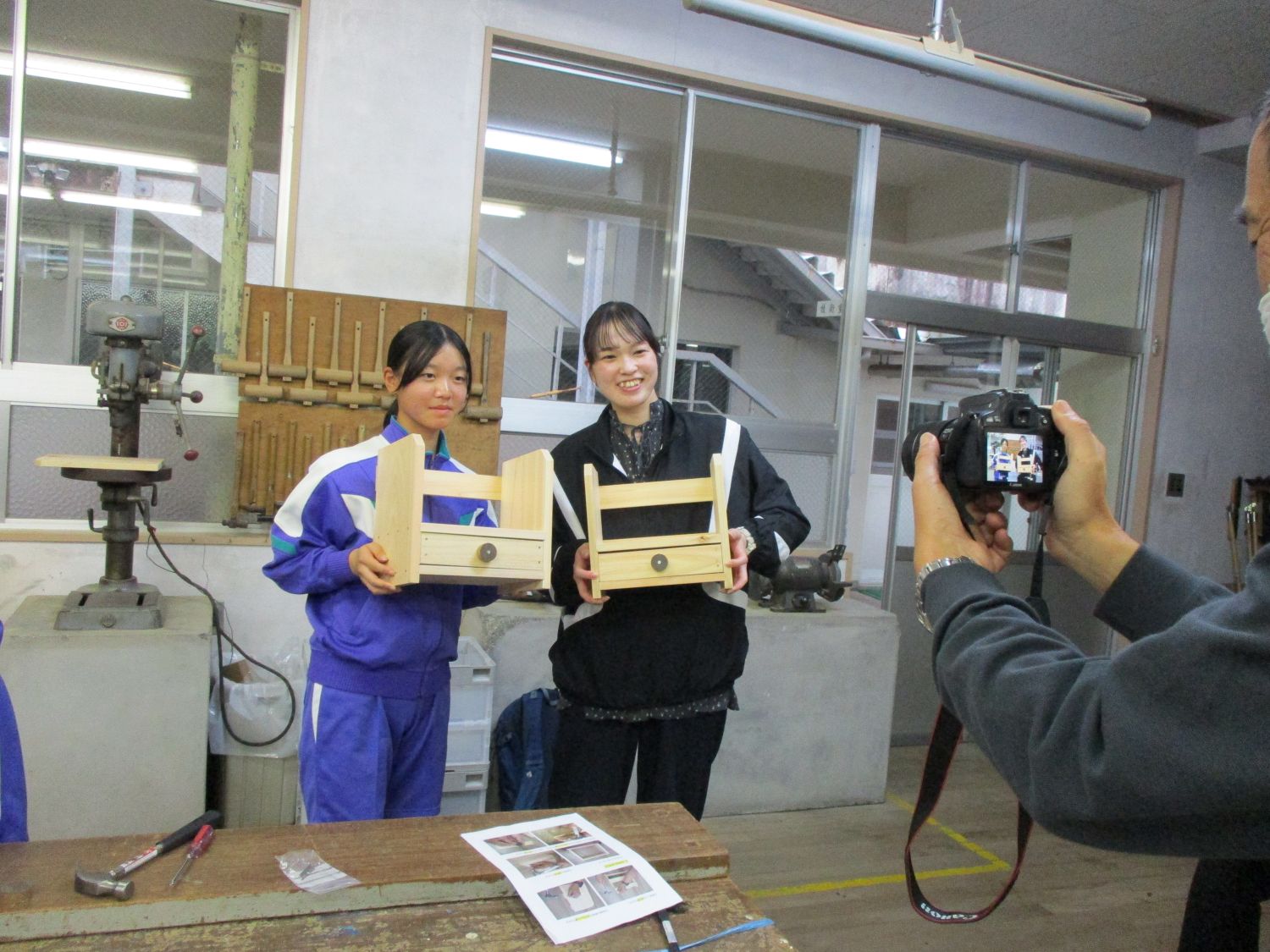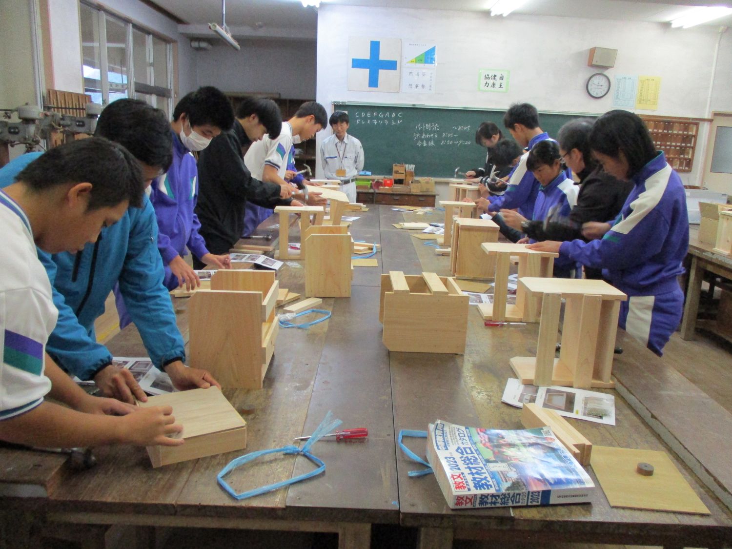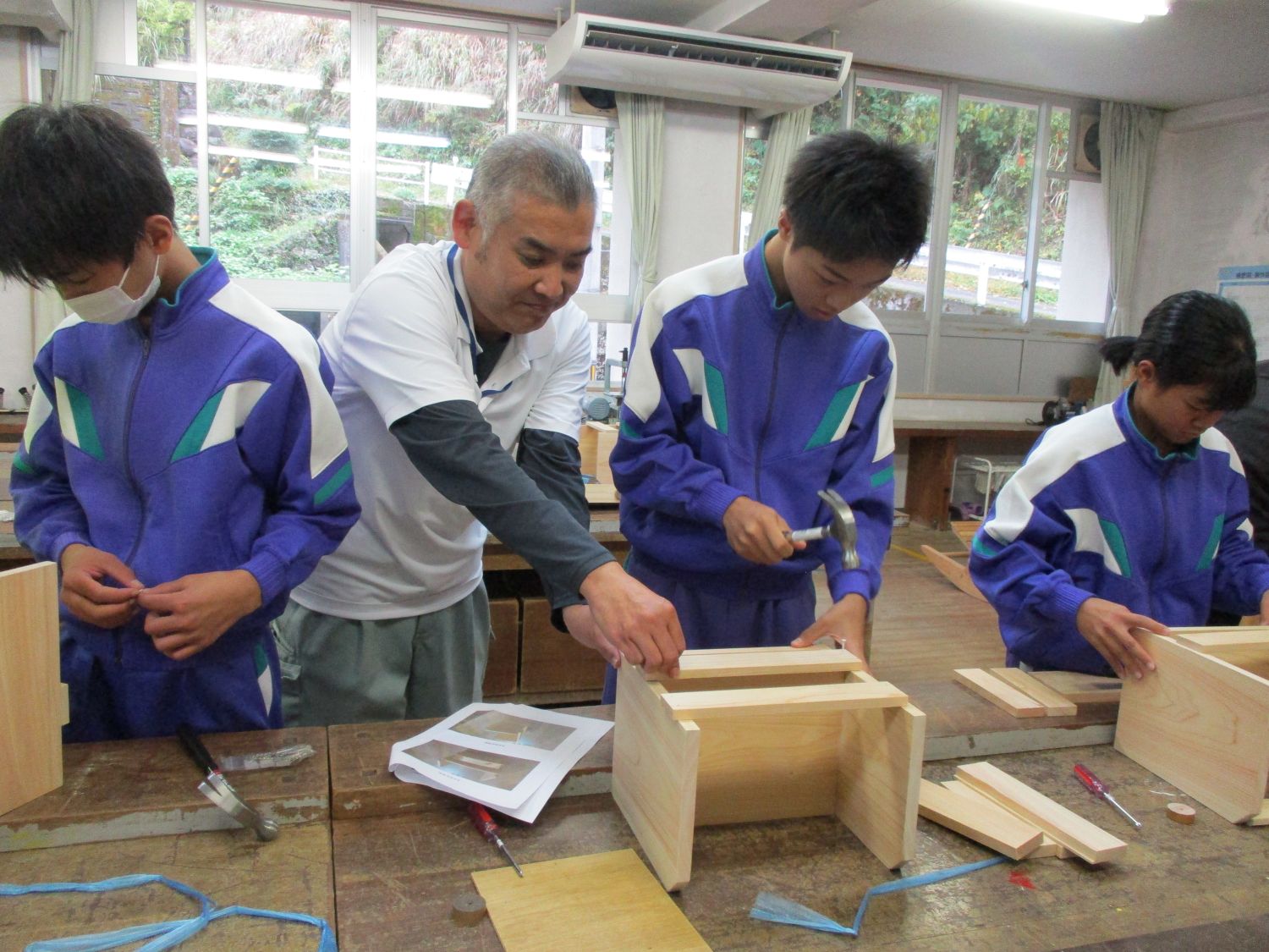 生徒の皆さん、お手伝いしていただいた学校関係者の皆様、木工材料を加工・提供していただいた鬼北町下鍵山の宮本建築様、船越友記郎講師、鬼北町農林課及び愛媛県南予地方局森林林業課の職員の皆様、大変お疲れ様でした。そして、どうもありがとうございました。<(_ _)>