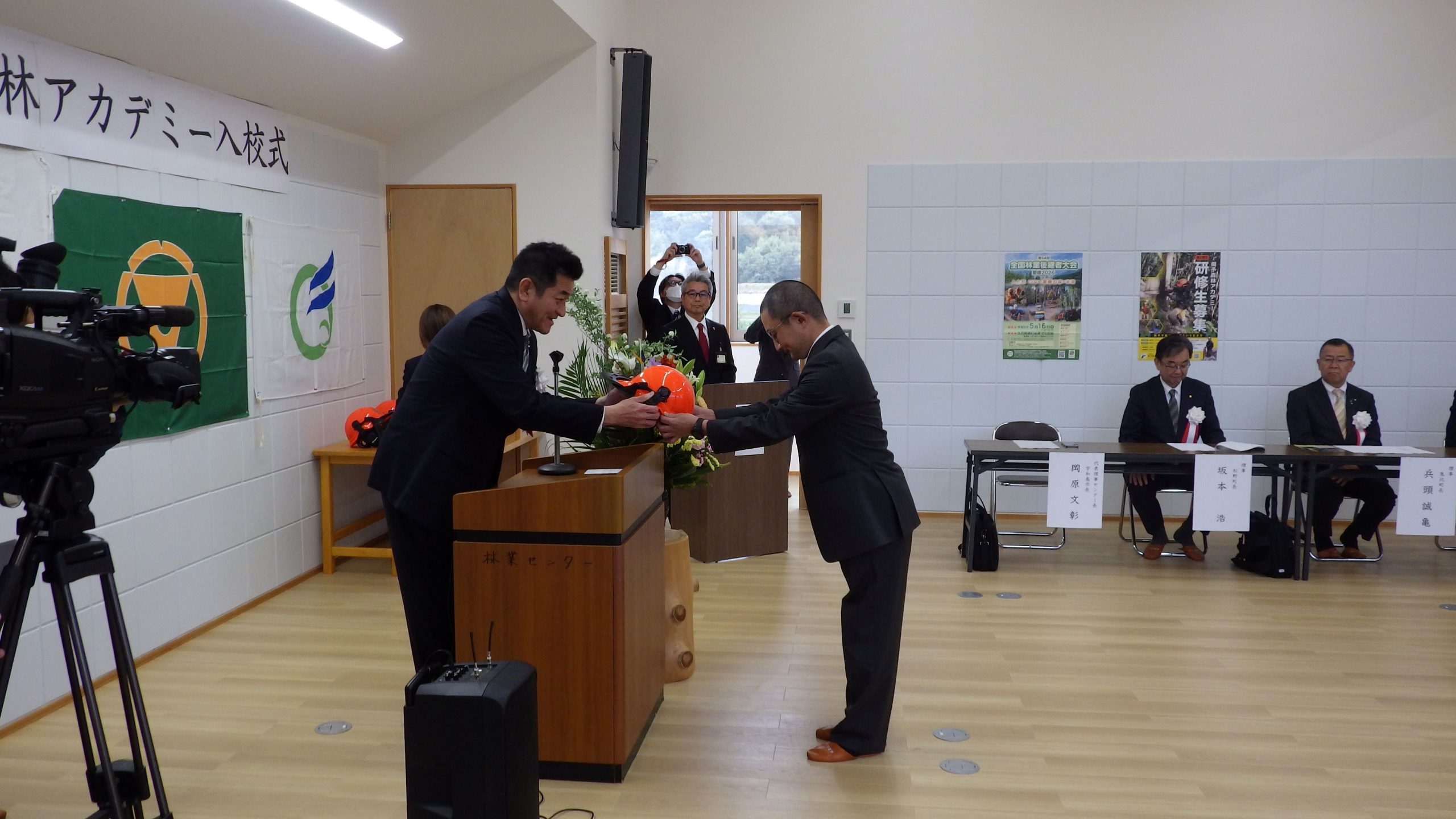 令和8年4月9日、令和8年度南予森林アカデミー入校式の様子をお届けいたします。今年度は新たに研修生6名(短期4名、長期2名)が入校いたしました。