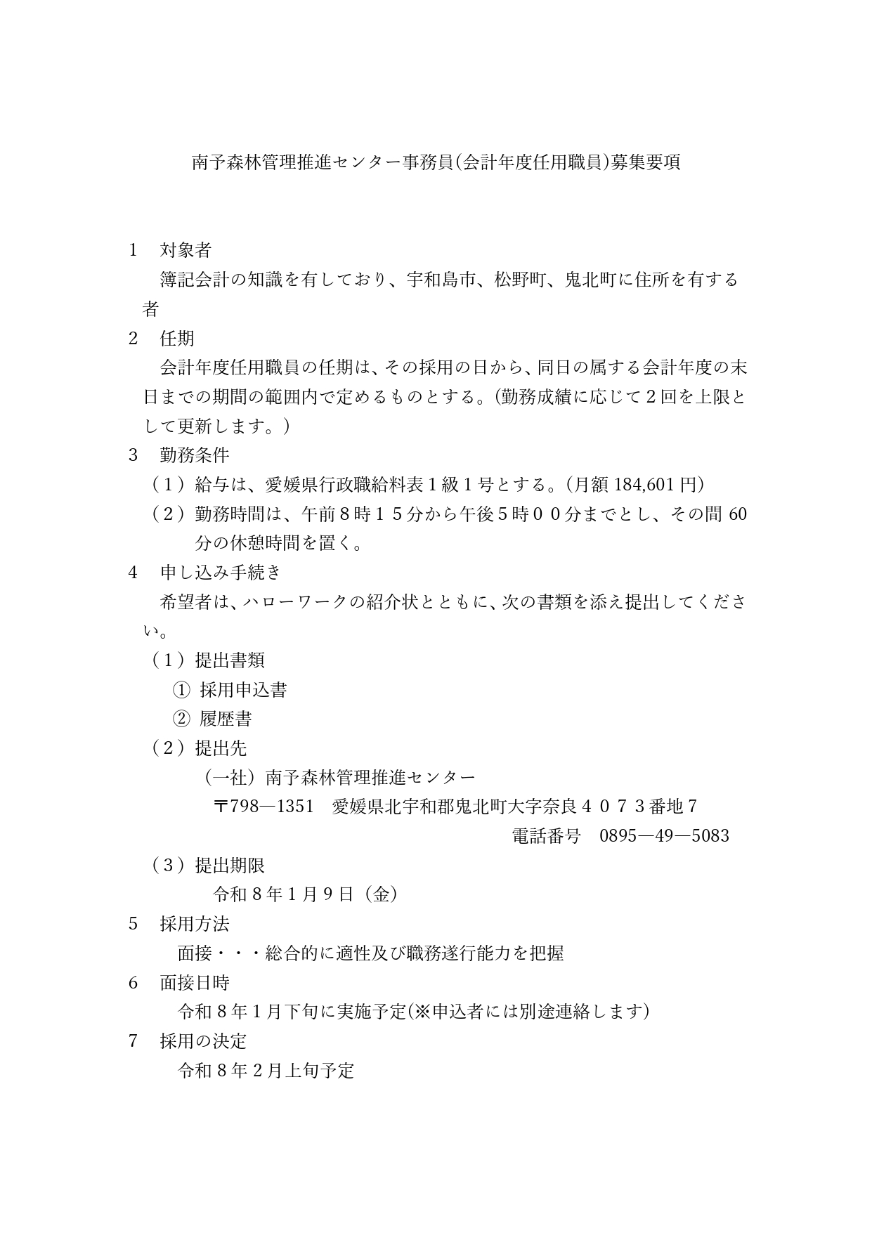 事務員1名を次の募集要項に基づき募集します。